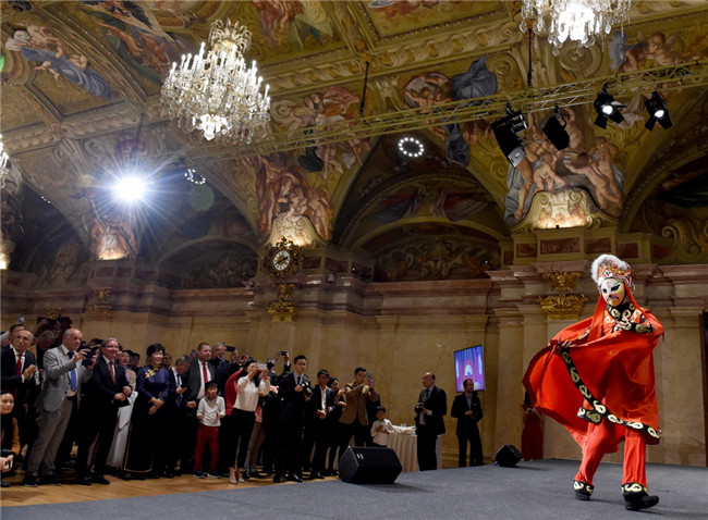 9日晚,“文化中國、錦繡四川”四川文化旅游展示會(huì)在奧地利首都維也納舉辦。本次活動(dòng)通過圖片展、傳統(tǒng)文藝表演以及川菜美食推介等形式,向當(dāng)?shù)鼐用窈秃M馊A人展示川蜀文化,展現(xiàn)中國魅力,受到了一致好評(píng)。新華社記者郭晨攝