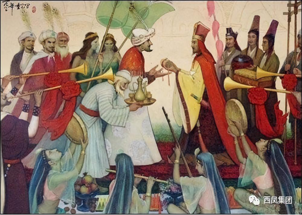酒除了是國(guó)家祭祀必不可少的重要部分外,也在商業(yè)賦稅和人們情感交流中承擔(dān)著重要地位。陜西西安(古長(zhǎng)安)是古絲綢之路的起點(diǎn),鳳翔是古絲綢之路的重要驛站,西鳳酒自漢代以來(lái)就作為饋贈(zèng)友邦、域外交流的國(guó)禮。史書記載,唐儀鳳(公元676年)年間的一個(gè)陽(yáng)春三月,吏部侍郎裴行儉護(hù)送波斯王子泥涅師回國(guó)途中,行至鳳翔縣城以西的亭子頭村附近,發(fā)現(xiàn)柳林鎮(zhèn)窖藏陳酒香氣將五里地外亭子頭的蜜蜂蝴蝶醉倒的奇景,即興吟詩(shī)贊嘆曰:“送客亭子頭,蜂醉蝶不舞;三陽(yáng)開(kāi)國(guó)泰,美哉柳林酒”,并以此詩(shī)贈(zèng)送王子。