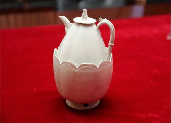 本次發(fā)現(xiàn)最具特色文物當(dāng)屬宋代官窯白瓷——白釉獅鈕瓜棱形帶花口溫碗執(zhí)壺。該款文物造型精美、器型罕見(jiàn),國(guó)內(nèi)尚未發(fā)現(xiàn)同款,具有特別重要的歷史藝術(shù)和科學(xué)文化價(jià)值。經(jīng)陜西省文物鑒定中心鑒定:該文物屬國(guó)家一級(jí),通高22.5厘米,壺口徑5厘米,底徑6.5厘米,溫碗口徑14厘米,底徑8.5厘米。該文物由蹲獅型鈕壺蓋、瓜棱形執(zhí)壺、帶鏤空足瓜腹形花口溫缽等三部分組成。從與該一級(jí)文物同時(shí)出土的慕志銘得知,該墓葬主人為宋代眉縣斜谷鎮(zhèn)下將張侍郎(相關(guān)于現(xiàn)今的鄉(xiāng)鎮(zhèn)教育專干)之父母(為合葬墓)。