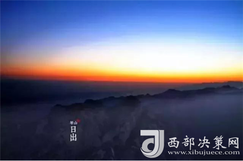 是時,但見夜幕自東方悄然隱退,晨曦初露,漸漸霞光瑰麗,云源奔涌。瞬間,一輪火球噴薄而出,繼而光芒四射,氣象萬千,整個世界大放光明,游人身心為之一振。待云霧散盡,蒼松翠柏,則更加清麗悅目,美妙神奇。故而,游名山者必登華山,登華山者必觀日。華山日出亦被列為華山自然風(fēng)光中的重要景觀之一。