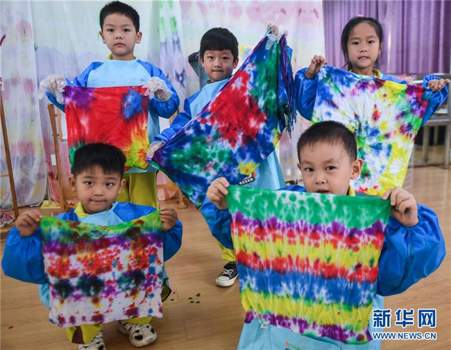 今年以來,浙江省長興縣夾浦鎮(zhèn)中心幼兒園依托當(dāng)?shù)貍鹘y(tǒng)布藝文化基礎(chǔ)開設(shè)“七彩課堂”,引進布藝、扎染等傳統(tǒng)工藝課程,讓孩子們感受民間工藝的魅力。 新華社記者 徐昱 攝