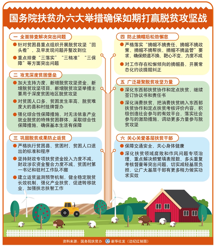 距離2020年底還剩400多天,國(guó)務(wù)院扶貧辦號(hào)召扶貧戰(zhàn)線不忘初心、牢記使命,堅(jiān)定必勝信心,發(fā)揮脫貧攻堅(jiān)專責(zé)部門(mén)主力軍作用,咬定目標(biāo),一鼓作氣,務(wù)求全勝。這六方面舉措包括: