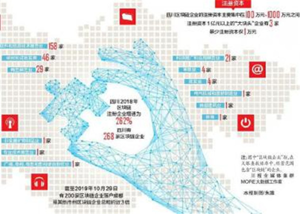 川報全媒體集群MORE大數據工作室查詢天眼查數據庫,發(fā)現截至10月底,經營范圍包含“區(qū)塊鏈”的川企有268家,比去年底增長了近50%。