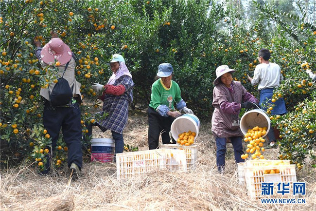 時下正是廣西鹿寨縣平山鎮(zhèn)數(shù)萬畝柑桔成熟上市的季節(jié)。據(jù)悉,2018年平山鎮(zhèn)柑桔產(chǎn)值3.29億元,隨著當?shù)馗探鄯N植面積不斷擴大,柑桔產(chǎn)業(yè)成為村民脫貧致富的重要產(chǎn)業(yè)。 新華社記者 周華 攝