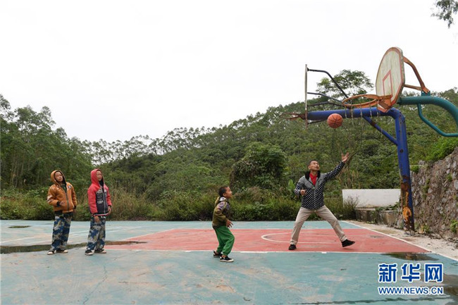 11月19日,在廣西上思縣那琴鄉(xiāng)中心小學(xué)逢通村教學(xué)點(diǎn),梁志雄教學(xué)生打籃球。新華社記者陸波岸攝