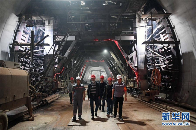 11月25日,中鐵十八局集團工作人員從三家村隧道工地走出。