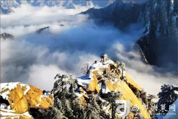 西峰又名蓮花峰,因翠云宮前有石如蓮瓣《山海經(jīng)》載,上有池生千葉蓮花,故稱蓮花峰,芙蓉峰。海拔2082.6米,蓮峰夕照,是西峰最壯麗的景色,每當(dāng)夕陽欲墜之際,満峰披霞鍍金,一派輝煌,真是“嶺背斜陽萬壑金”。西峰是華山最有觀賞價值的主峰之一,其峰勢險峻之驚人,傳說之動人,景觀之迷人,世所罕見。