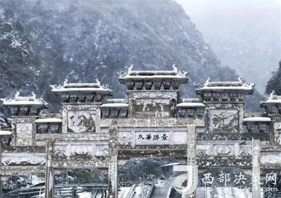 華山的雪景不僅是銀白的世界,而是猶如千姿百態(tài)的雪雕。雪霽,便有“林海玉樹”、“雪堆玉石”、“云中雪龍”、“巖崖雪屋”、“梨花飛揚(yáng)”、“天女散花”、“紅帶玉墜”等各具形態(tài)的奇特景觀。