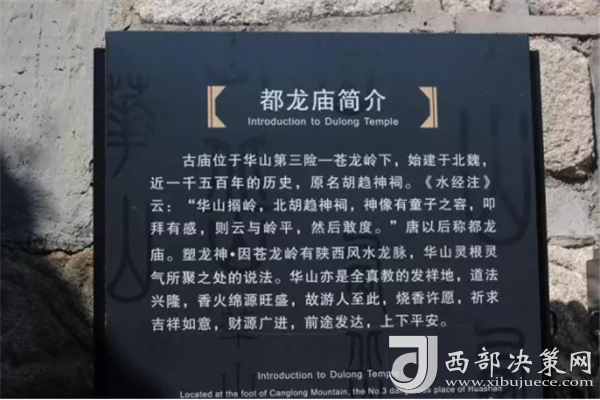 廟始建時稱胡趨神寺?!端?jīng)注》記述:“化山搦嶺,北胡趨寺,神像有童子之容。祠祀有感,則云與之平,然后敢度”。清以后,廟被俗稱為都龍廟,又作督龍廟,廟內(nèi)塑像為龍君,怒目圓睜,須髭飄冉,形象生動威武。廟的更名大凡與清乾隆時陜西巡撫畢沅開鑿蒼龍嶺道路、傷了龍脈的傳說有關(guān)。據(jù)民間傳,自畢沅開路傷龍脈后,蒼龍?jiān)贌o力行云布雨以護(hù)農(nóng)桑,百姓便塑像祭奉香火以示懺悔,祈請并督促蒼龍病體康復(fù),佑百姓豐年太平。(供稿:華旅集團(tuán)營銷中心)