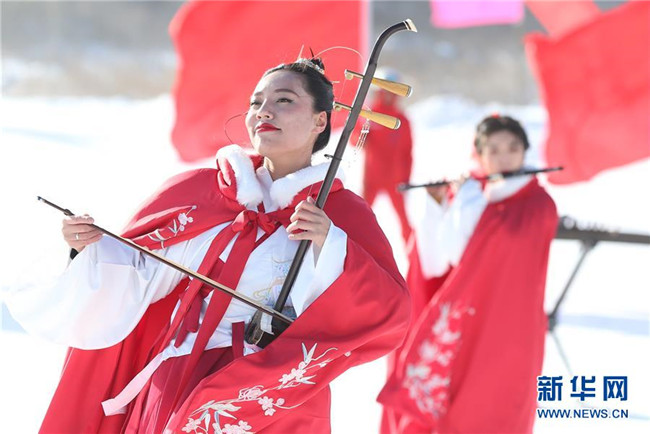 12月26日,表演者在啟動儀式上表演。當日,寧夏固原首屆冰雪文化旅游節(jié)在涇源縣婭豪國際滑雪場開幕。本屆冰雪文化旅游節(jié)以“相約六盤山·歡樂冬季游”為主題,將冰雪資源、文化旅游和體育賽事相結(jié)合,吸引游客參觀游玩。新華社記者賈浩成攝