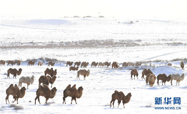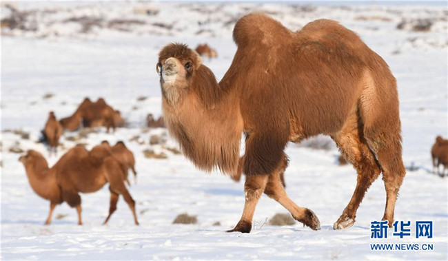 12月30日,牧民在新疆吉木乃縣“萬駝園”放駱駝。新華社記者 沙達(dá)提 攝