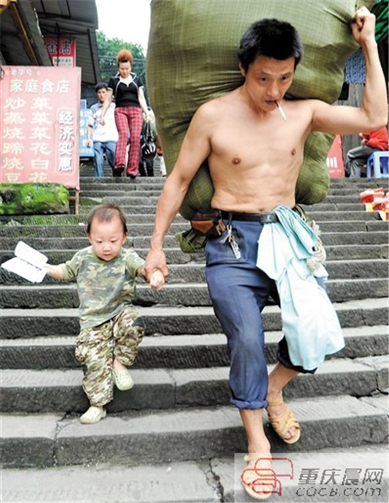 當(dāng)時(shí),許康平是第一次看到冉師傅扛著貨,一手牽著年幼的兒子從梯坎上走下,父親的從容,兒子的天真,父子倆的那種微妙的情感打動(dòng)了他,果斷按下快門。
