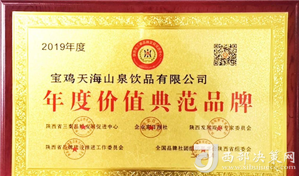 “年度價(jià)值典范品牌”榮譽(yù)由陜西省三秦品牌發(fā)展促進(jìn)中心、企業(yè)家日?qǐng)?bào)社、陜西發(fā)展觀察專(zhuān)家委員會(huì)、陜西省品牌建設(shè)推進(jìn)工作委員會(huì)、全國(guó)品牌社團(tuán)組織聯(lián)席會(huì)陜西省組委會(huì)等單位聯(lián)合評(píng)審頒發(fā)。此次太極之源礦泉水品牌生產(chǎn)灌裝基地、“中國(guó)富硒食品產(chǎn)業(yè)化基地”——寶雞天海山泉飲品有限公司獲得此項(xiàng)榮譽(yù),可以說(shuō)是對(duì)太極之源品牌價(jià)值的高度認(rèn)可和肯定!