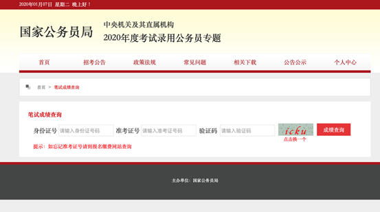 筆試成績(jī)查詢界面截圖(來(lái)源:國(guó)家公務(wù)員局網(wǎng)站)