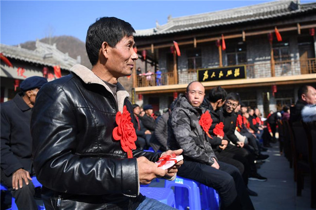 1月7日,村民康耀林在分紅大會(huì)上領(lǐng)到自己的分紅。 新華社記者 陳斌 攝