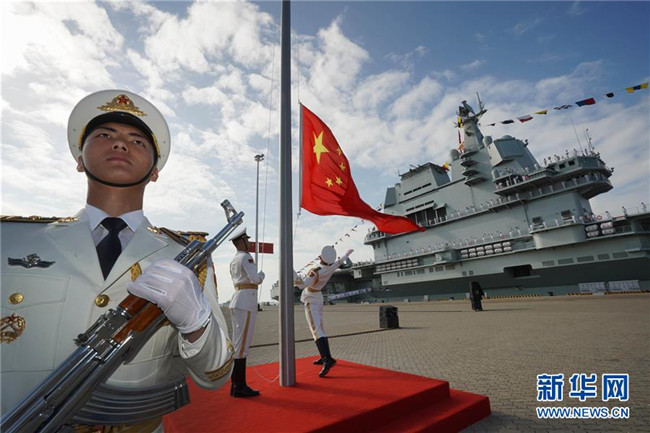 2019年12月17日,我國第一艘國產(chǎn)航空母艦山東艦在海南三亞某軍港交付海軍。經(jīng)中央軍委批準(zhǔn),我國第一艘國產(chǎn)航母命名為“中國人民解放軍海軍山東艦”,舷號為“17”。這是交接入列儀式現(xiàn)場。 新華社記者 李剛 攝