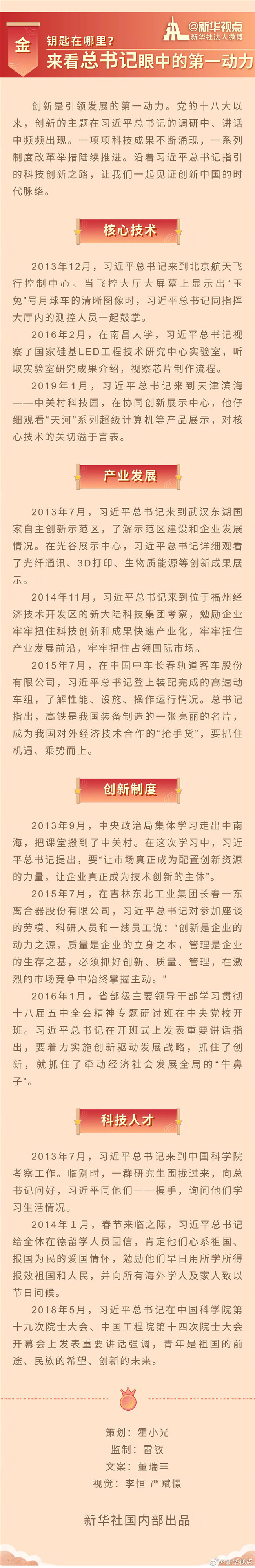 “緊緊扭住技術(shù)創(chuàng)新這個戰(zhàn)略基點”、“掌握更多關(guān)鍵核心技術(shù)”……從國內(nèi)考察到出席中央會議,從主持中央政治局集體學(xué)習(xí)到作出重要指示,習(xí)近平總書記反復(fù)強調(diào)的,正是中國創(chuàng)新發(fā)展的路徑方向。