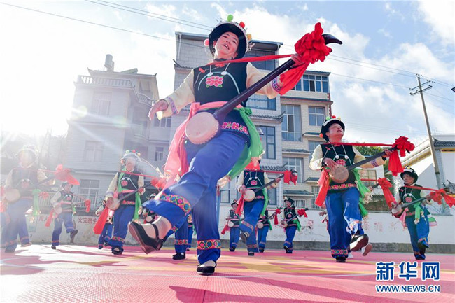 當日,云南省大理白族自治州南澗彝族自治縣碧溪鄉(xiāng)回龍山村進行了“鄉(xiāng)村春晚”彩排,村民們排練了自編自演的充滿鄉(xiāng)土氣息的精彩節(jié)目。