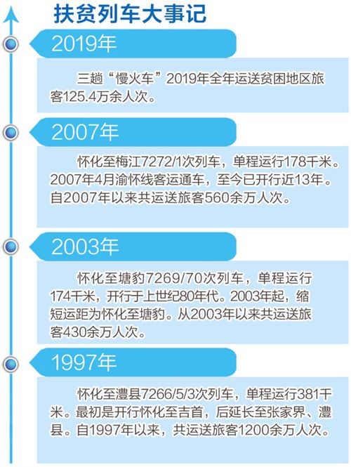 “慢火車”幾十年如一日運行在湘渝黔武陵山區(qū),這里沿線聚居著苗、侗、土家族等少數(shù)民族,經(jīng)濟欠發(fā)達,貧困程度深,是國家脫貧攻堅的重點區(qū)域。為方便沿線百姓人、貨往來方便,列車允許乘客肩挑背扛大量山貨乘車,更有不少學(xué)子靠乘坐慢火車,走完求學(xué)之路。扶貧“慢火車”已成為山區(qū)困難群眾致富奔小康的希望之路。
