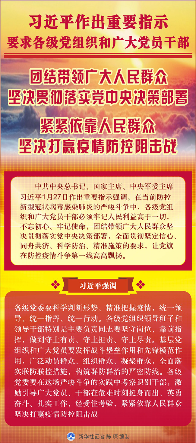 習近平作出重要指示要求各級黨組織和廣大黨員干部 團結帶領廣大人民群眾堅決貫徹落實黨中央決策部署 緊緊依靠人民群眾堅決打贏疫情防控阻擊戰(zhàn)