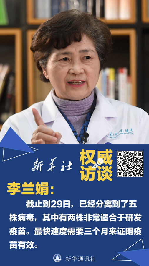 李蘭娟:研發(fā)疫苗第一步是要獲得病毒株。目前,我們已經分離到了五株病毒,其中有兩株非常適合于研發(fā)疫苗。分離到種子株之后,還要把種子株的病毒在細胞中培養(yǎng),讓它長到一定的量,這就需要一個多月。大量的細胞病毒拿到了,還要進行滅活,并對它的免疫原性如何,能不能預防、有沒有效果、有沒有毒力、會不會造成新的感染等開展實驗。