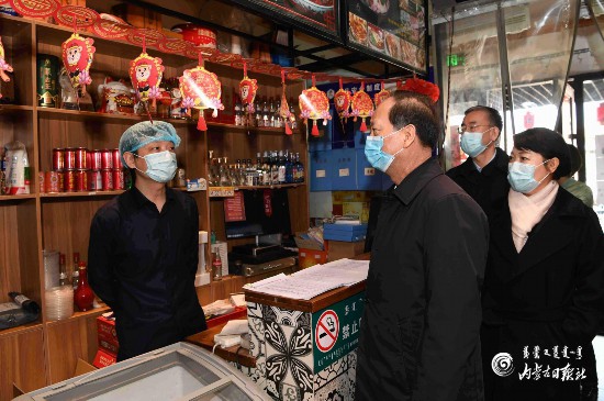 3月12日,自治區(qū)黨委書記、人大常委會(huì)主任石泰峰隨機(jī)走進(jìn)一家臨街餐館,檢查防疫措施,詢問(wèn)員工返崗和營(yíng)業(yè)情況。 內(nèi)蒙古日?qǐng)?bào)社融媒體記者 袁永紅 攝