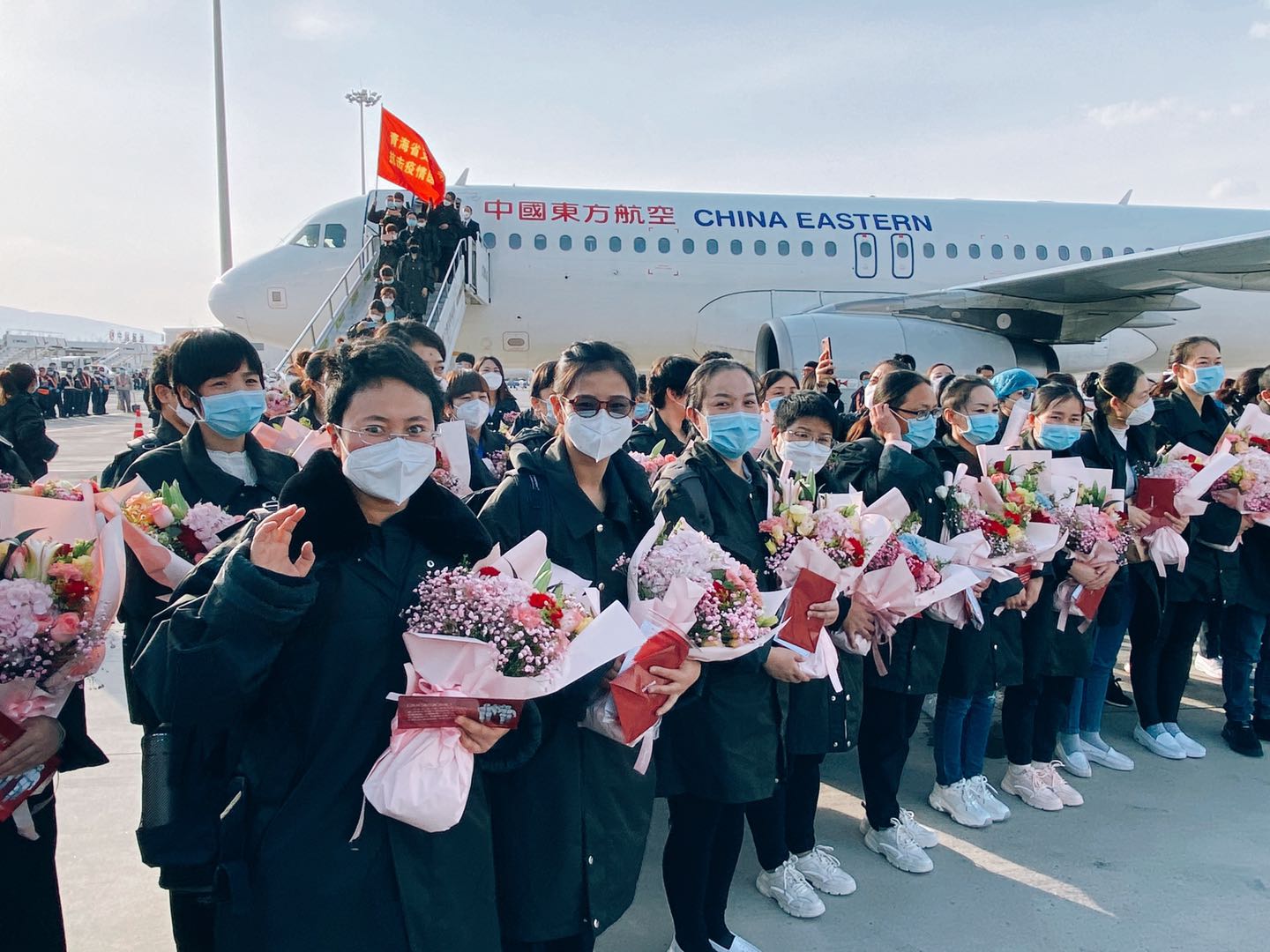 隨著疫情防控形勢逐步轉(zhuǎn)好,完成救助任務(wù)的各地馳援醫(yī)療隊(duì)將分批離開。根據(jù)國家衛(wèi)健委的統(tǒng)一安排,3月17日,青海第二批支援武漢醫(yī)療隊(duì)從武漢出發(fā),踏上返程之路。他們?cè)谧鎳賳?、人民期盼的關(guān)鍵時(shí)刻,挺身而出,整裝待發(fā),投身到這場沒有硝煙的重大戰(zhàn)役中,用忠誠踐行愛國、用熱血書寫大愛。2月4日,由全省25家醫(yī)療機(jī)構(gòu)的102名醫(yī)護(hù)人員組成的青海省第二批支援武漢醫(yī)療隊(duì)踏上馳援湖北征程。2月8日,她們正式進(jìn)駐武漢市洪山體育館方艙醫(yī)院,截至休艙,累計(jì)護(hù)理住院病例328例,累計(jì)出院246例,實(shí)現(xiàn)了醫(yī)護(hù)零感染、患者零死亡、出院零回頭的目標(biāo)。