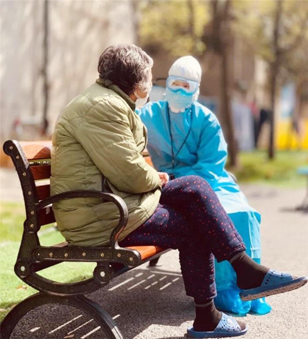 8艙有一位80多歲的老奶奶,中午出來遛彎時(shí)看到了醫(yī)療隊(duì)護(hù)士萬珍妮,主動(dòng)過來攀談。“你是陜西來的?我看你衣服上寫著西安幾個(gè)字了。”“是啊,奶奶,我們是西安國(guó)際醫(yī)學(xué)中心醫(yī)院來武漢支援的。”萬珍妮通過和奶奶聊天得知,奶奶的父親以前在寶雞工作過很長(zhǎng)時(shí)間。“我也算半個(gè)陜西人了。沒想到在這里還能見到“老鄉(xiāng)”!感謝你們!”奶奶感覺很親切,和萬珍妮話起了“家常”。