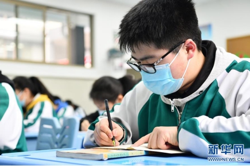 3月23日,昆明市第一中學(xué)高三年級學(xué)生在教室上課。當(dāng)日,云南省內(nèi)多所中學(xué)初三、高三畢業(yè)班的學(xué)生們回到校園。按照此前云南省教育廳發(fā)布的通知,新冠肺炎疫情防控達(dá)到開學(xué)要求的中學(xué),初三、高三年級可在3月23日開學(xué)。