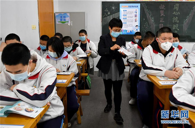 當(dāng)日,陜西初三年級(jí)35.46萬(wàn)學(xué)生、中等職業(yè)學(xué)校畢業(yè)年級(jí)5.83萬(wàn)學(xué)生返校復(fù)課。 新華社記者 劉瀟 攝