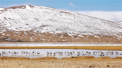 隆寶是青海省第一個(gè)國家級(jí)自然保護(hù)區(qū)。1984年建站之初只有22只黑頸鶴,如今已經(jīng)有超過216只在這里棲息。普布說,隆寶保護(hù)區(qū)的濕地東西長23千米,南北寬5千米,平均海拔4100多米,海拔高、地域?qū)拸V、水汽環(huán)境適宜,因此成為很多水鳥遷徙途中的驛站。