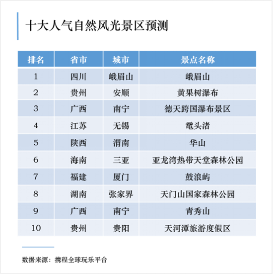 近日,攜程綜合各景區(qū)目前的瀏覽量與門票預訂量,發(fā)布了“預約景區(qū)人氣預測排行榜”,人氣最高的十大自然風光類景區(qū)中華山赫然其中。