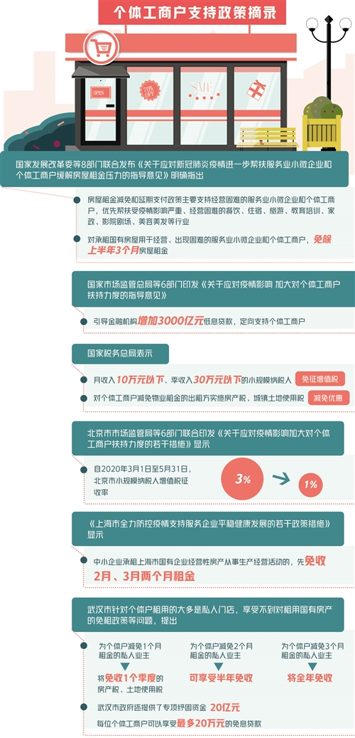 顯而易見,房租是個體工商戶最大的成本。黨中央、國務(wù)院一直高度關(guān)注中小微企業(yè)、個體戶的房租減免問題,并作出多次部署。早在疫情暴發(fā)初期,市場監(jiān)管總局等六部門出臺的《關(guān)于應(yīng)對疫情影響 加大對個體工商戶扶持力度的指導(dǎo)意見》就提出鼓勵各地結(jié)合實際減免個體工商戶房租。