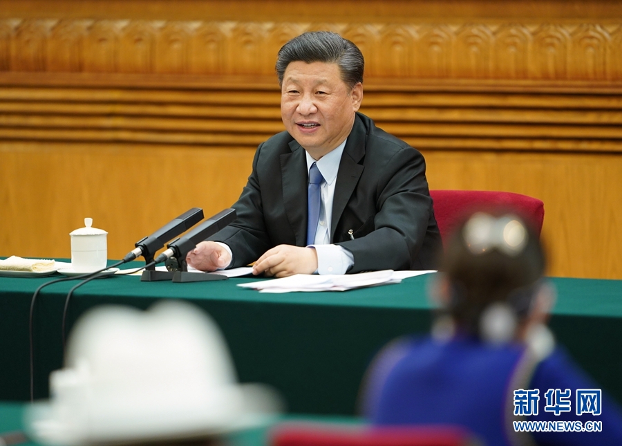 5月22日,中共中央總書記、國家主席、中央軍委主席習(xí)近平參加十三屆全國人大三次會議內(nèi)蒙古代表團(tuán)的審議。 新華社記者 謝環(huán)馳 攝