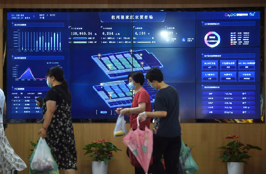 浙江省杭州市的5G農(nóng)貿(mào)市場(chǎng)——駱家莊農(nóng)貿(mào)市場(chǎng)。(新華社記者韓傳號(hào) 攝)