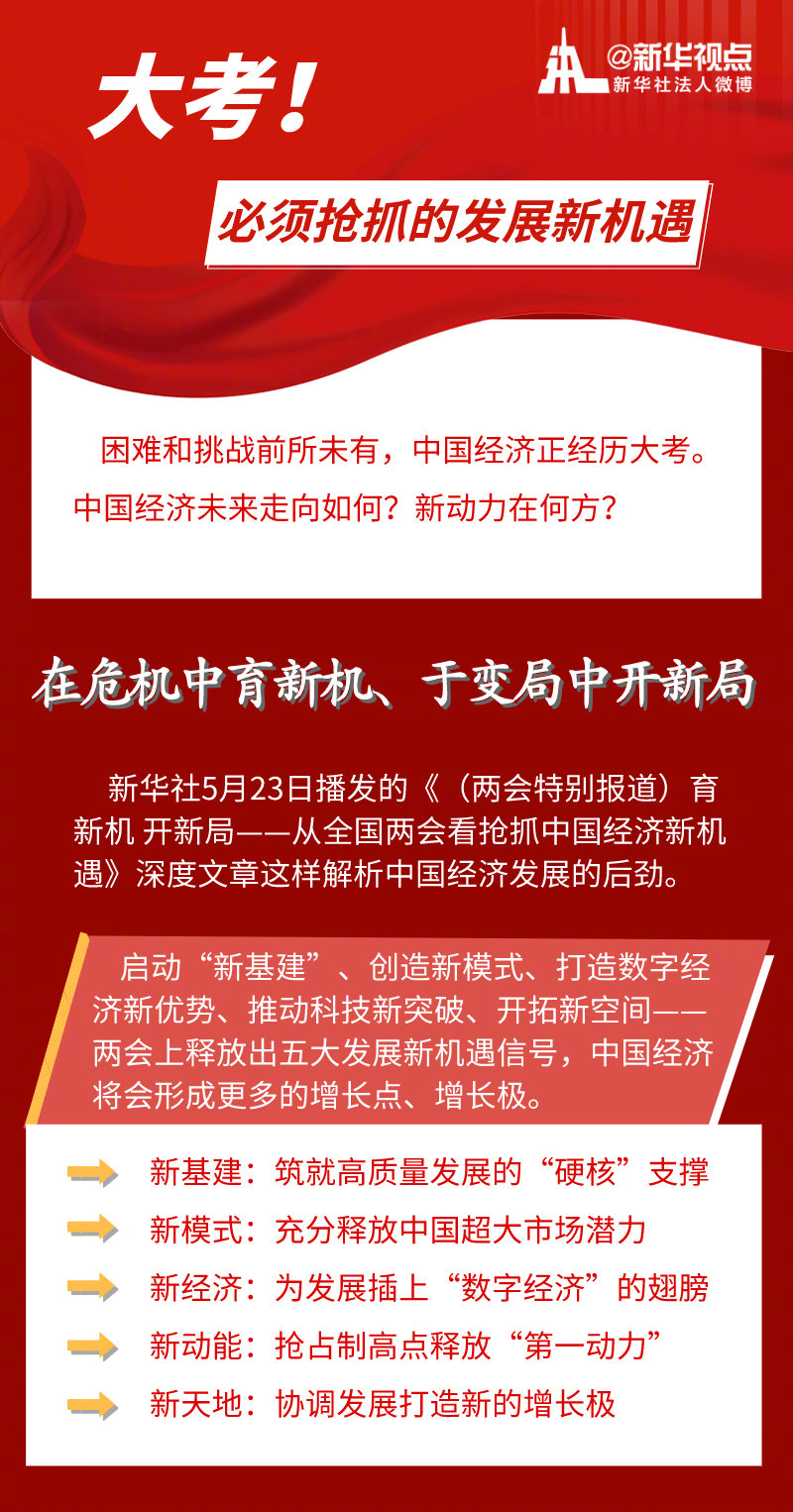 啟動(dòng)“新基建”、創(chuàng)造新模式、打造數(shù)字經(jīng)濟(jì)新優(yōu)勢(shì)、推動(dòng)科技新突破、開(kāi)拓新空間——不斷涌現(xiàn)的新機(jī)遇、新趨勢(shì),正匯聚起不竭新動(dòng)能,推動(dòng)中國(guó)經(jīng)濟(jì)乘風(fēng)破浪、行穩(wěn)致遠(yuǎn)。