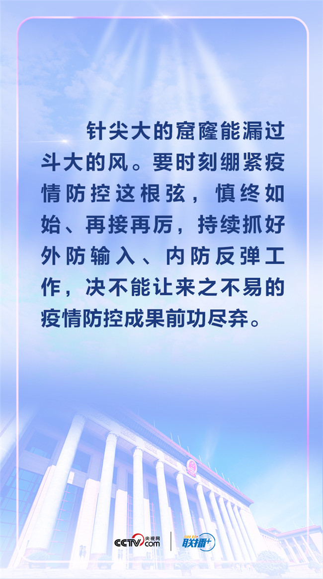 當(dāng)前,境外疫情擴(kuò)散蔓延勢(shì)頭仍然沒有得到有效遏制,國(guó)內(nèi)個(gè)別地區(qū)聚集性疫情仍然存在,湖北有時(shí)還出現(xiàn)散發(fā)零星確診病例,無癥狀感染者每天還有新增。習(xí)近平用一句“大白話”講明了加強(qiáng)疫情防控的重要性。
