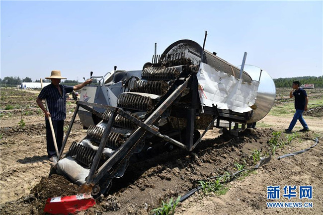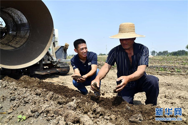 5月24日,在夏津縣雙廟鎮(zhèn)清涼寺村,徐如松(右)和村民在收蚯蚓。新華社記者 郭緒雷 攝