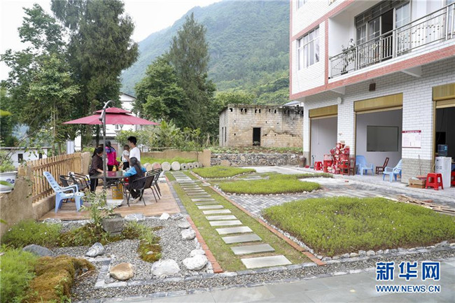 5月28日,在重慶市巫溪縣紅池壩鎮(zhèn)漁沙村,村民在自家門前的小花園休息。新華社發(fā)(黃偉 攝)