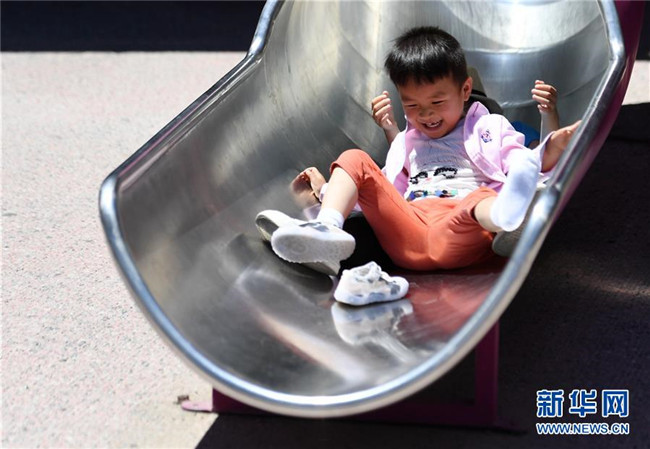 5月31日,在北京市海淀區(qū)中關(guān)村街道新科祥園社區(qū)廣場(chǎng),小朋友在玩耍。 新華社記者 任超 攝