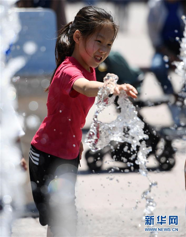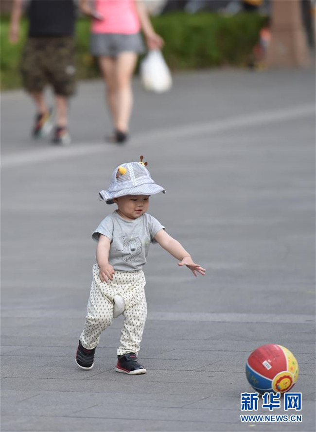 5月31日,小朋友在北京鐘鼓樓文化廣場(chǎng)玩耍。新華社發(fā)(陳鐘昊攝)