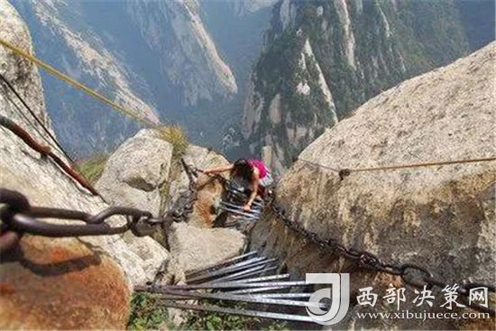 眾所周知 “自古華山一條路”是一道奇觀。這條道路或越澗跨溪,或臨崖盤山,或入崖間深谷,或走峭壁嶺脊,或平坦或曲陡,或?qū)挸ɑ颡M窄,曲折變化,跌宕起伏,把人帶入意境深邃的萬般景象之中。道路兩旁遍布的摩崖石刻,使人仿佛走進(jìn)一個(gè)書法藝術(shù)的走廊。一步一景一傳說,更使華山沿途披上了濃厚的文化色彩。