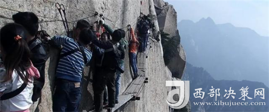 長空棧道位于華山南峰東側(cè)山腰,是華山派第一代宗師元代高道賀志真為遠(yuǎn)離塵世靜修成仙,在萬仞絕壁上鑲嵌石釘搭木椽而筑。棧道上下皆是懸崖絕壁,鐵索橫懸,由條石搭成尺許路面,下由石柱固定,游人至此,面壁貼腹,屏氣挪步,被喻為“華山第一天險(xiǎn)”。不過經(jīng)歷了新冠病毒的考驗(yàn),真的不知道這對(duì)于偉大的醫(yī)護(hù)人員來說算不算險(xiǎn)。