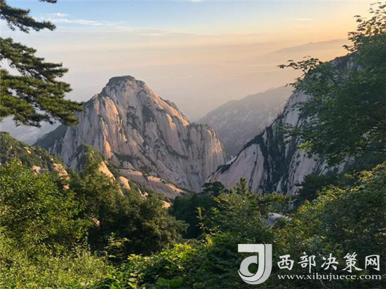 華山主峰以其“山堯太華府咸京”之勢, “挺拔峻秀賽四岳”之態(tài), “位居祖國搖籃黃河濱岸”之美和“自古華山一條路”之奇而著稱于世。由華山山腳下眺望諸峰,如百仞壁立,刀劈斧削,挺拔峻秀,更有千尺幢、百尺峽、蒼龍嶺等險(xiǎn)道歷歷在目。各峰異態(tài),層戀疊翠,雄偉壯觀。尤其是東、南、西、中四峰呈較規(guī)則的平行四邊形柱體,以400~500 m 的高度聳立于周圍群峰之上, 猶如千峰捧岳。