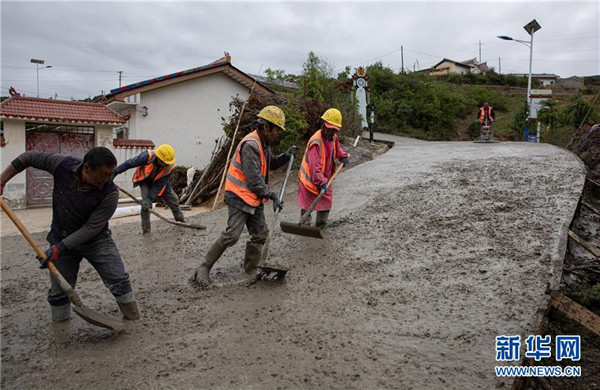 四川路橋公司的工人在金陽縣依達鄉(xiāng)保爾村對破損路面進行整治(6月5日攝)。坐落在金沙江畔的四川省金陽縣是國家級深度貧困縣,境內(nèi)群山連綿起伏,海拔落差大,眾多村寨處于高山或者高半山上,道路施工難度大。近年來,當(dāng)?shù)卣畬⒔煌ㄗ鳛槊撠毠缘南葘?dǎo)性工程,路越修越寬、越修越好,成為當(dāng)?shù)厝罕姷拿撠氈赂宦贰=刂?019年底,金陽縣實現(xiàn)所有鄉(xiāng)鎮(zhèn)通油路、建制村通硬化路,鄉(xiāng)道里程達329.9公里,村道里程達866.8公里。新華社記者江宏景攝