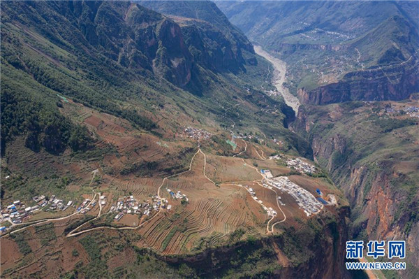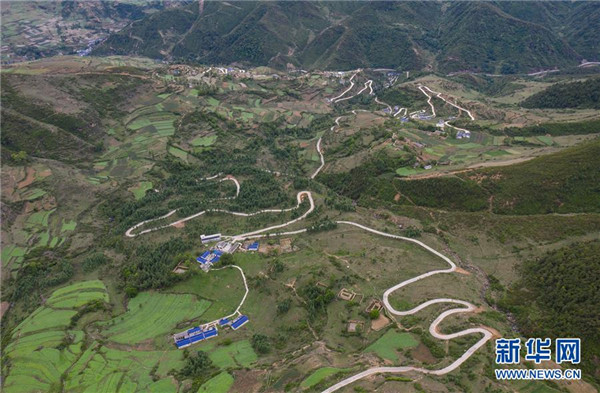 金陽縣天地壩鎮(zhèn)通往吉史里口村易地扶貧搬遷集中安置點的道路(6月7日攝,無人機照片)。坐落在金沙江畔的四川省金陽縣是國家級深度貧困縣,境內(nèi)群山連綿起伏,海拔落差大,眾多村寨處于高山或者高半山上,道路施工難度大。近年來,當(dāng)?shù)卣畬⒔煌ㄗ鳛槊撠毠缘南葘?dǎo)性工程,路越修越寬、越修越好,成為當(dāng)?shù)厝罕姷拿撠氈赂宦贰=刂?019年底,金陽縣實現(xiàn)所有鄉(xiāng)鎮(zhèn)通油路、建制村通硬化路,鄉(xiāng)道里程達329.9公里,村道里程達866.8公里。新華社記者江宏景攝