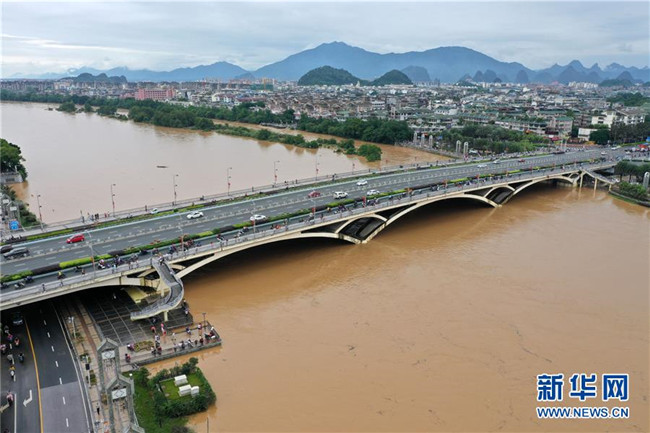 受持續(xù)強(qiáng)降雨影響,漓江桂林水文站于6月9日12時30分出現(xiàn)146.49米的洪峰水位,超警戒水位0.49米。