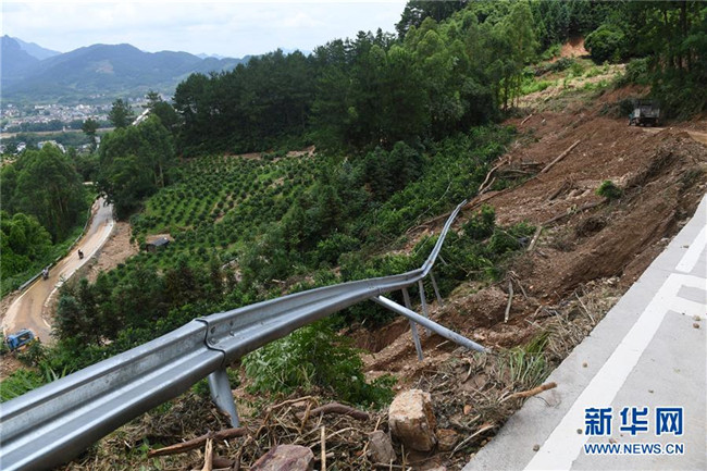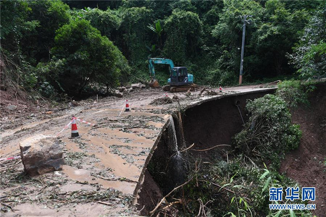 這是廣西陽朔縣普益鄉(xiāng)境內的一處滑坡?lián)p毀道路(6月11日攝)。新華社記者 陸波岸 攝