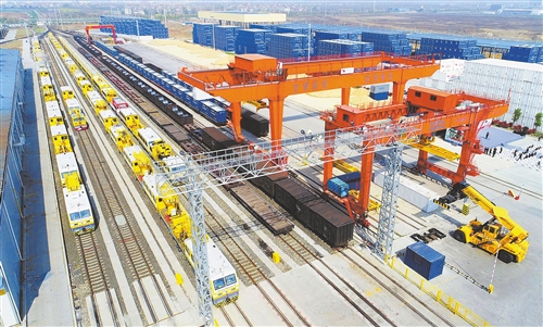 湖北襄陽自貿(mào)片區(qū)內襄北編組站發(fā)出貨運班列。 (資料圖片)