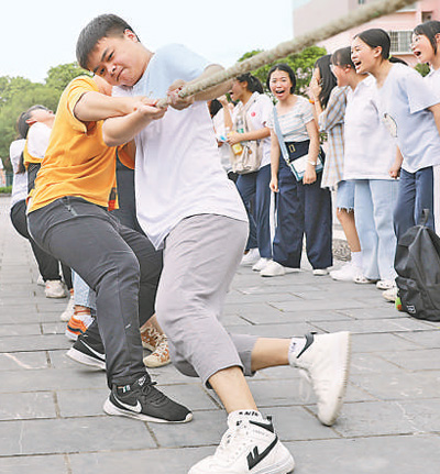 6月28日,湖南省道縣第一中學高三學生在進行拔河比賽放松心情。何紅福攝(人民視覺)